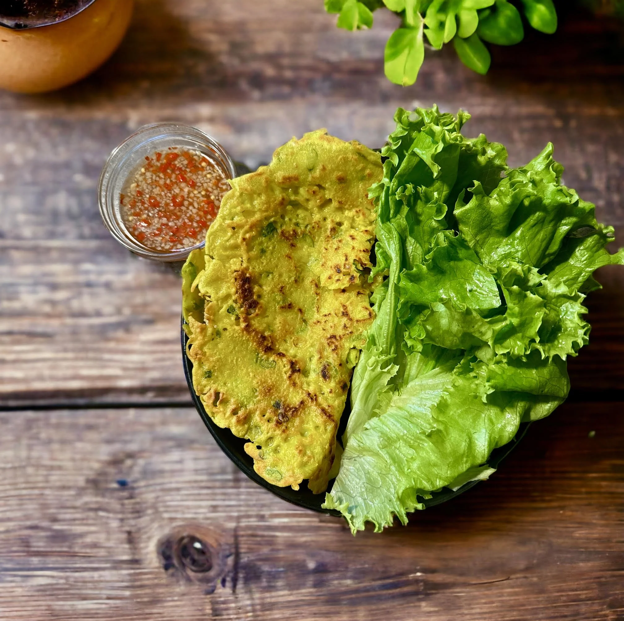 Serve with lettuce and you can wrap your banh xeo with rice paper